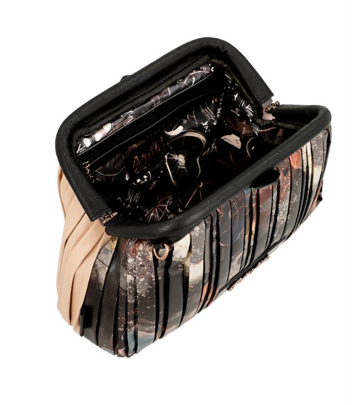 plisirani efekt materijala sa printom umjetničke slike na crnoj podlozi,